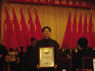 2006年公司獲得國家免檢產(chǎn)品稱號,作為江蘇省唯一獲得此殊榮的磚瓦機械廠家,該稱號的獲得不僅是政府對公司產(chǎn)品質(zhì)量的認可,也是客戶對公司產(chǎn)品質(zhì)量的信賴,更是對公司長期以來堅持“科技興企、質(zhì)量先行”宗旨的理想回報。下圖是公司董事長崔恒全同志在北京人民大會堂領(lǐng)獎時的精彩瞬間。