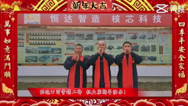 在此新春到來之際,南通恒達(dá)公司董事長(zhǎng)崔恒全先生攜全體員工祝大家:芝麻開花節(jié)節(jié)高、百尺竿頭日日升、前程似錦、大展宏圖、萬事如意、心想事成!
