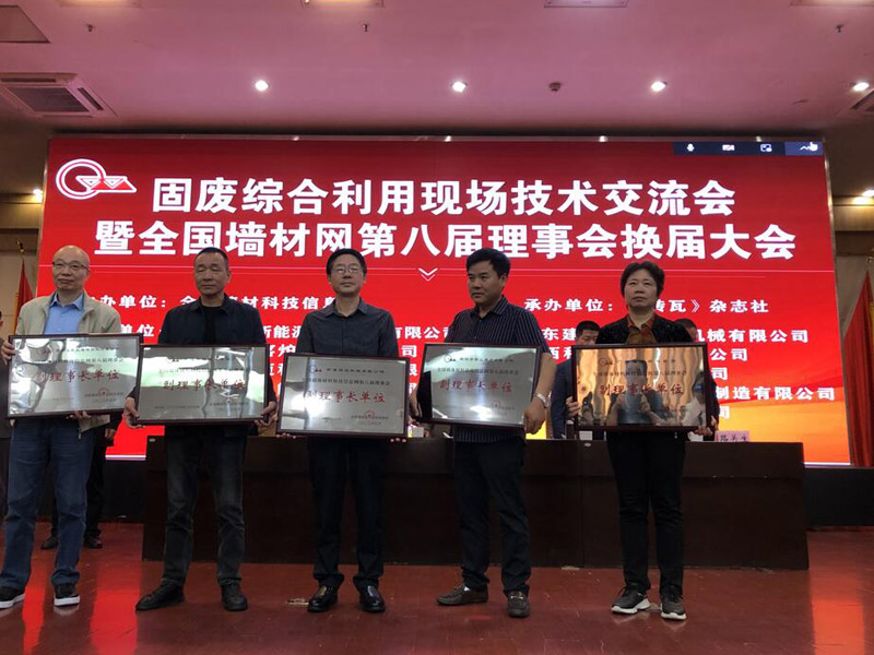 現(xiàn)場(chǎng)進(jìn)行了固廢綜合利用現(xiàn)場(chǎng)技術(shù)交流及全國(guó)墻材網(wǎng)第八屆理事會(huì)換屆,南通恒達(dá)公司等5家企業(yè)換屆選舉為全國(guó)墻材網(wǎng)第八屆理事會(huì)副理事長(zhǎng)單位并舉行了授牌儀式。公司董事長(zhǎng)崔恒全先生代表南通恒達(dá)公司上臺(tái)接牌。